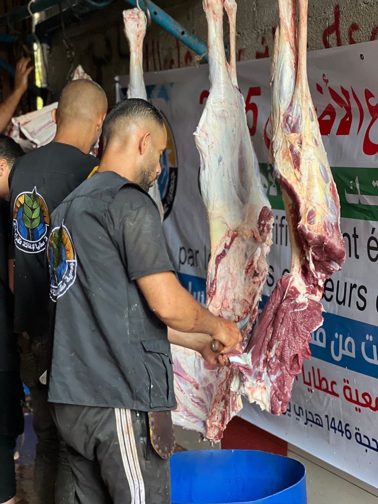 ما زال العطاء مستمر في ثالث ايام عيد الأضحى المبارك ضمن مشروعنا اضاحي 2025 ( أضحيتك حياة لأهل غزة ) وتم بحمدلله في هذا الصباح ذبح الأضاحي وتقديم لحومها لاهلنا الصابرين الصامدين في مخيمات جنوب قطاع غزة دعماً لصمودهم وتعزيزاً لصبرهم وتخفيفاً لآلامهم في ظل الحصار وغلاء الأسعار وتفشي المجاعة و الشكر موصول لكل من جاد وأراق دم أضحيته في غزة لتكون نور ونجاة لاهله الذين يعانون الجوع و الإبادة وتم بفضلكم ادخال السرور على العديد من المخيمات في جنوب قطاع غزة وإطعامهم أطعمكم الله من الجنة وجزاكم عنا خير الجزاء.