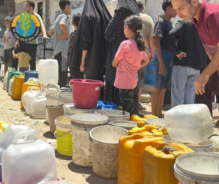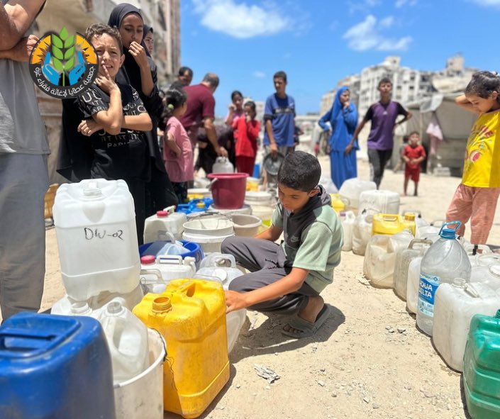 في ظل الظمأ الحاد ودرجات الحرارة المرتفعة، وغياب المياه الصالحة للشرب عن مراكز النزوح، تواصل جمعية عطايا الخيرية تنفيذ مشروع سقيا الماء، بتوزيع المياه الباردة الصالحة للشرب على النازحين في شمال قطاع غزة.