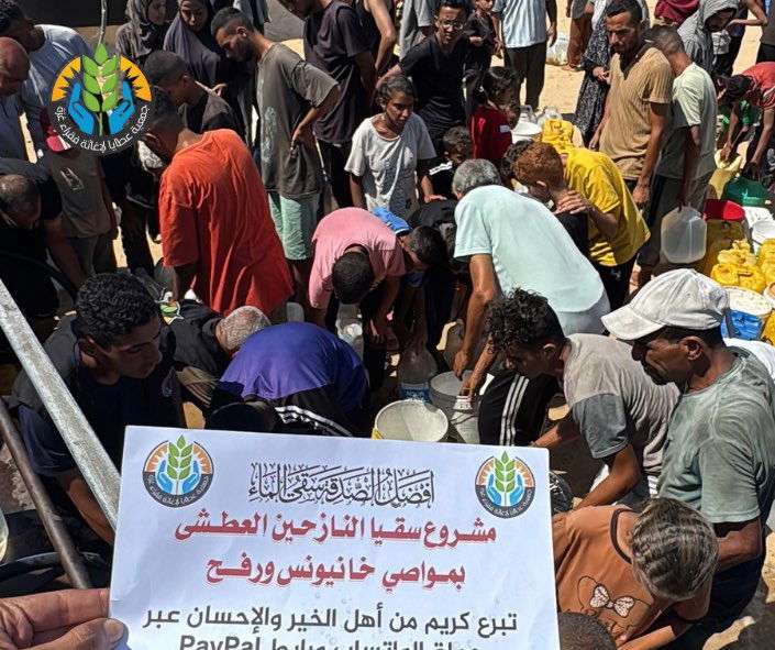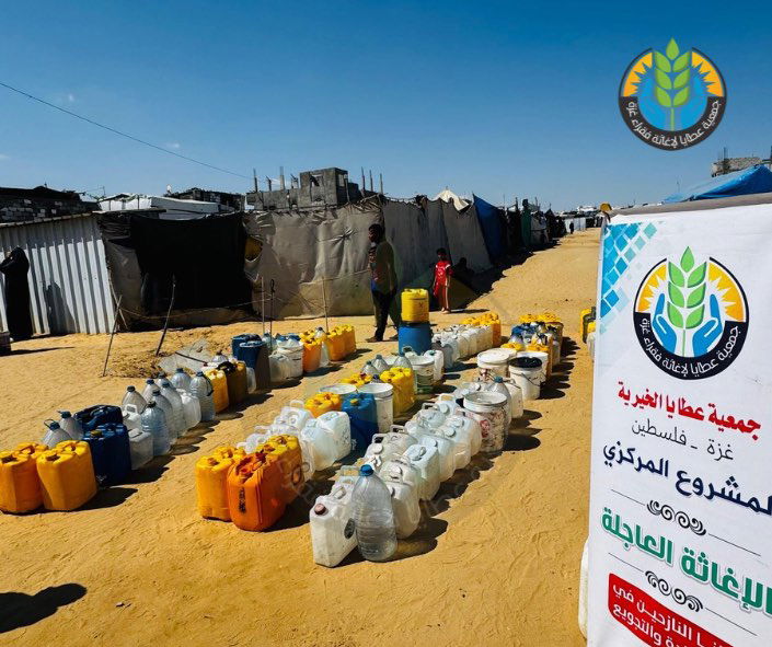في ظل الارتفاع الشديد لدرجات الحرارة وانعدام مصادر المياه الصالحة للشرب، تستمر جمعية عطايا الخيرية بمشروع سقيا الماء في جنوب قطاع غزة، لتوفير المياه النقية للأسر النازحة والمنكوبة.