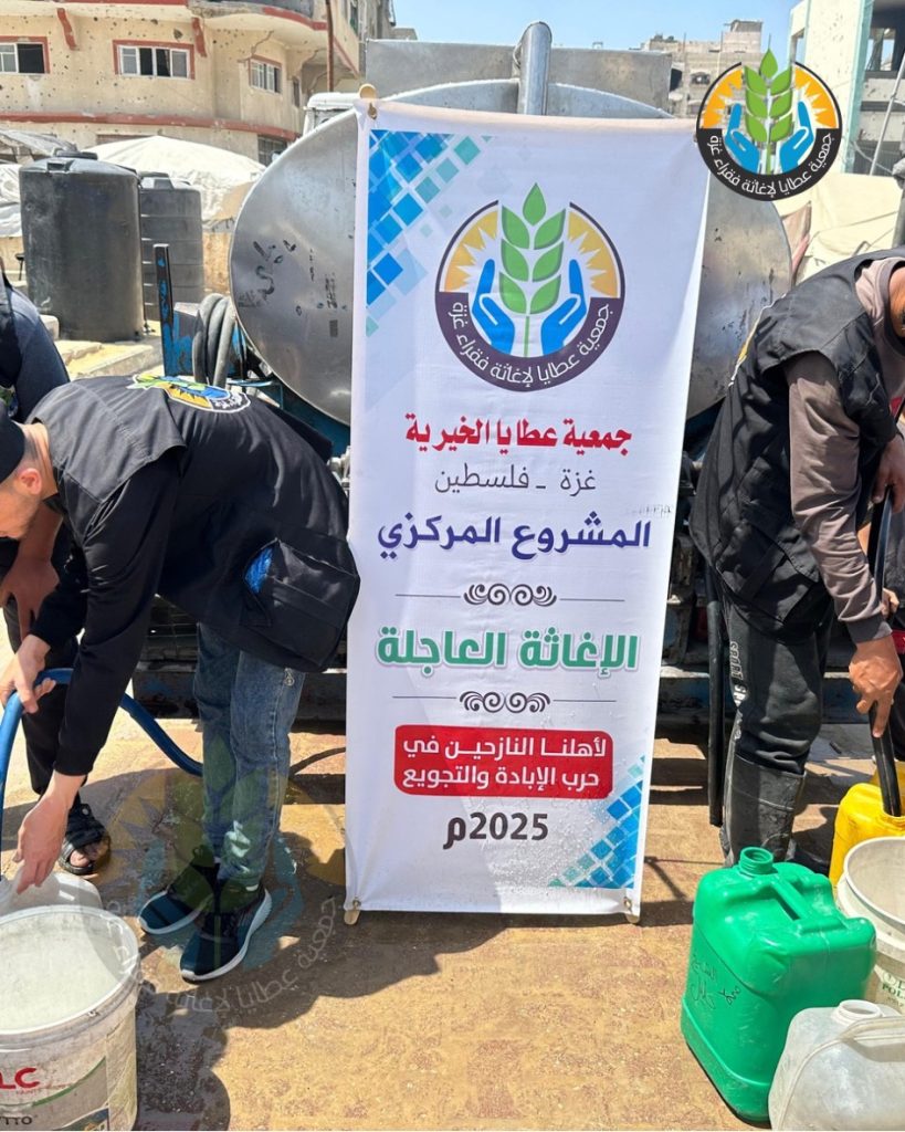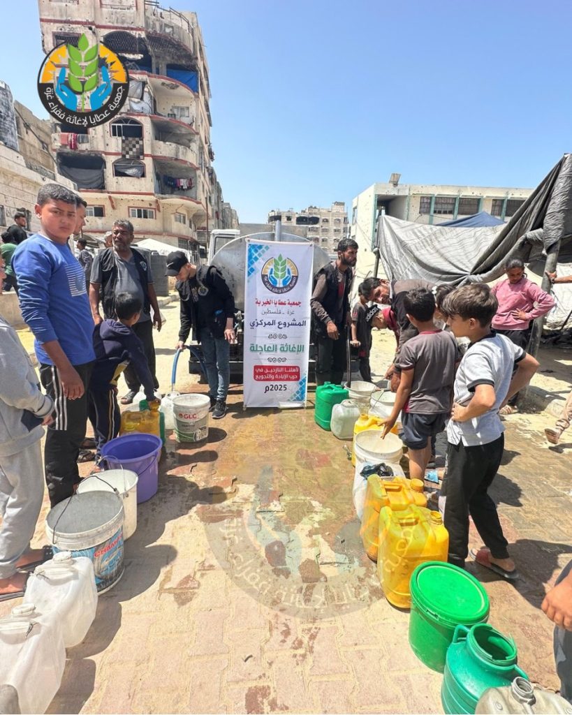 تواصل جمعية عطايا الخيرية تنفيذ مشروع سقيا الماء في مناطق النزوح شمال قطاع غزة، في ظل موجات الحرّ الشديدة وانعدام المياه الصالحة للشرب.