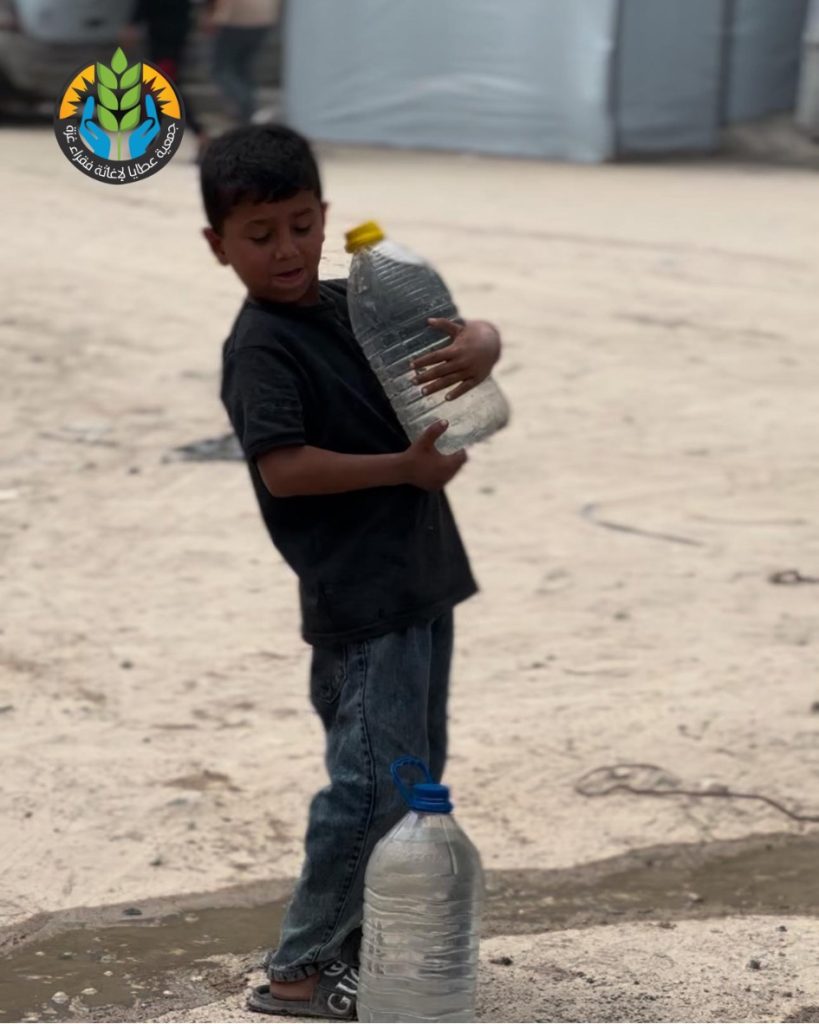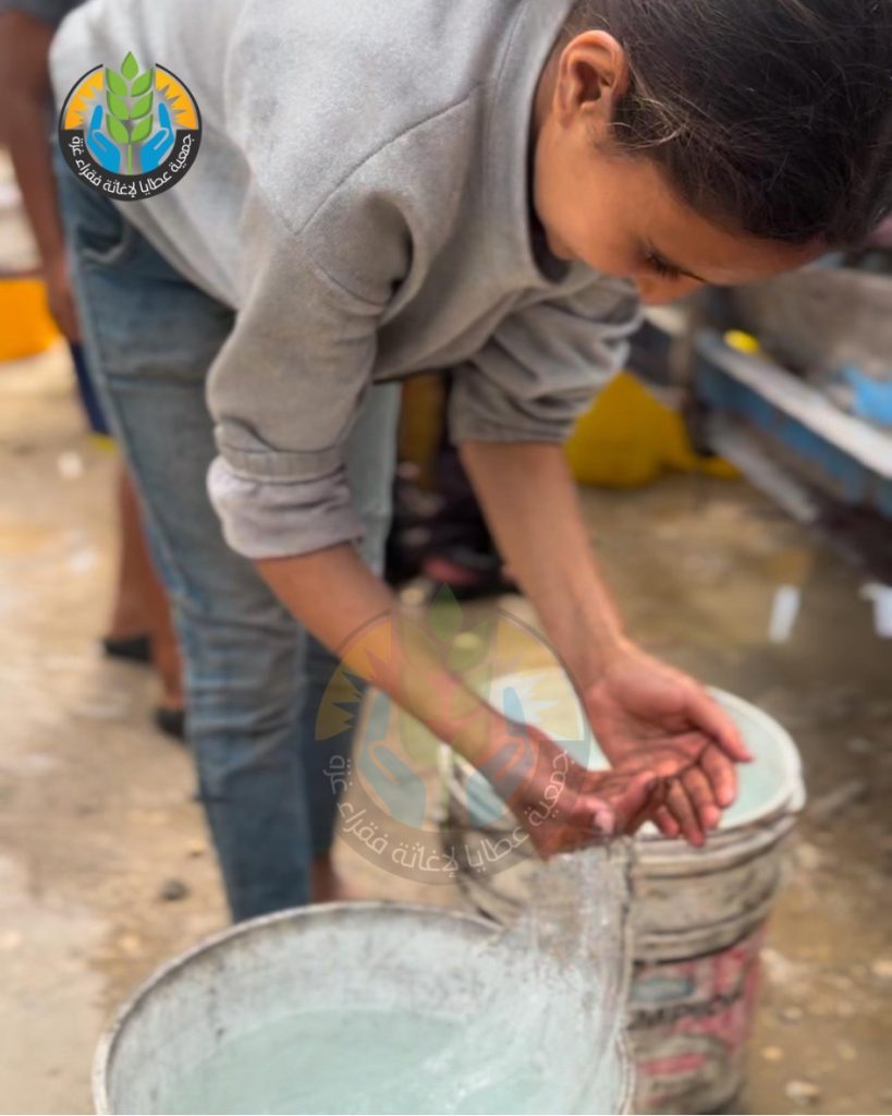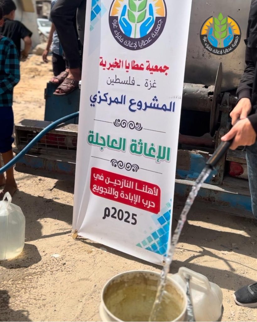 ضمن مشروع سقيا الماء، تواصل جمعية عطايا الخيرية جهودها الإغاثية بتوزيع المياه الصالحة للشرب على أهلنا النازحين في شمال غزة، في ظل موجات الحر الشديد وانعدام المياه الصالحة للشرب.